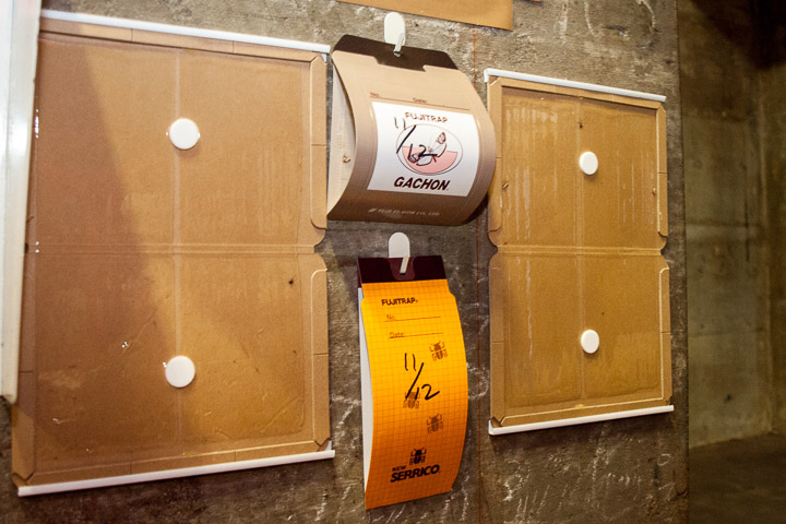 常温庫と定温庫に設置されている温度計・湿度計をチェックし、毎日記録しております。